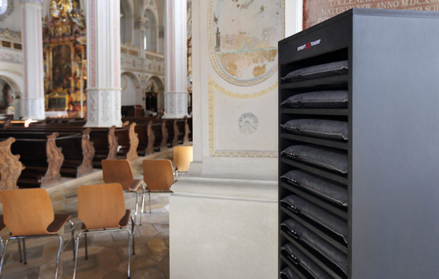 Pour le processus de charge, le coussin chauffant doit être placé dans les compartiments de charge de la tour. La tour de charge nécessite une prise et offre jusqu'à 36 emplacements de charge et de stockage (12, 24 et 36 tours de charge).